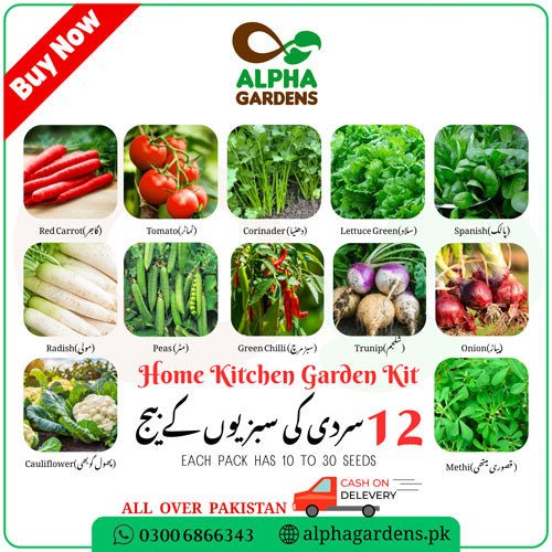 Diverse Winter Harvest: Includes 12 popular and easy-to-grow winter vegetable varieties like Tomato, Coriander, Lettuce Green, Spinach, Red Carrot, Green Chili Long, Turnip, Onion, Radish White, Peas, Cauliflower, and Kasuri Methi.