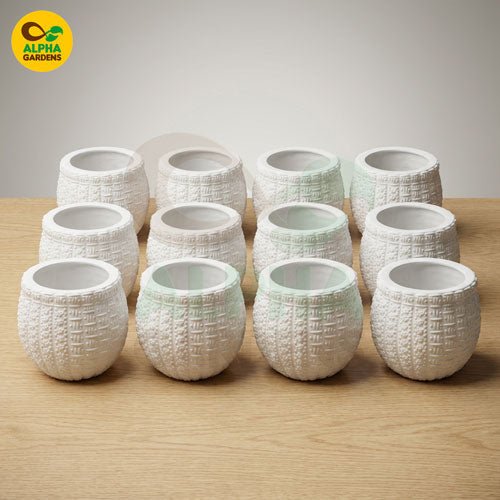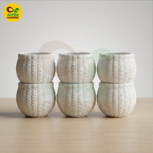 Introduce elegance and texture to your home décor with this White Embossed Round Resin Planter, designed to elevate any small plant with its handcrafted pattern and premium matte finish. The pot features an intricate etched texture that blends boho charm with modern minimalism—perfect for styling desktops, shelves, coffee tables, or gifting. Made from high-quality resin, it offers durability, lightweight handling, and long-lasting beauty for all indoor greenery.