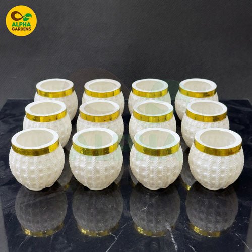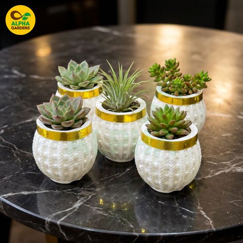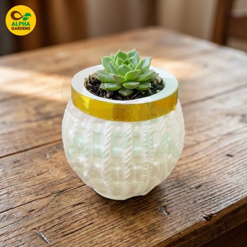 Elegant white & gold knitted-texture mini plastic pot for succulents. Lightweight, durable, stylish décor perfect for home, office, and gifting.