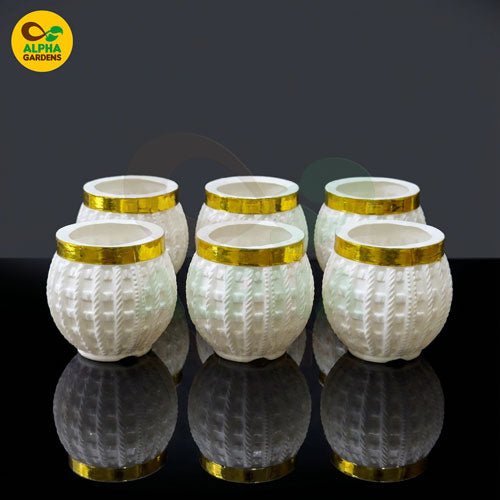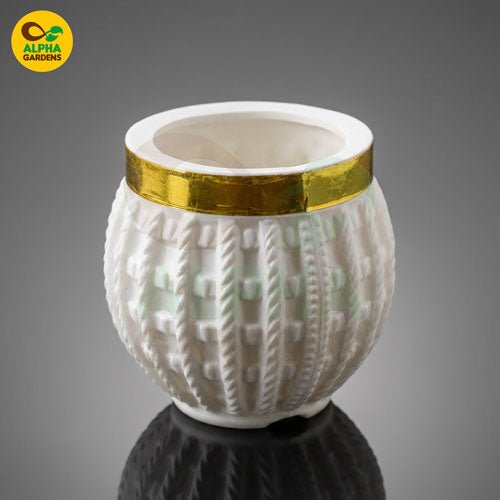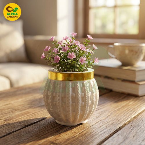 Add a touch of elegance to your indoor plant setup with this beautiful White & Gold Knitted-Texture Mini Plastic Pot. Designed to mimic the luxury of ceramic while offering the lightweight durability of premium plastic, this pot is the perfect home for succulents, mini cacti, Echeveria, and small decorative plants. The embossed knitted pattern gives it a unique handcrafted look, making it a stylish center piece for any home or office space.